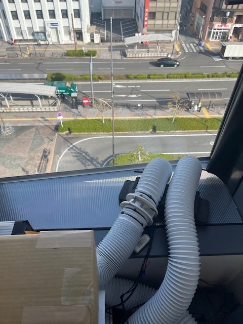 窓は扇形に約15センチしか開かず、そのままでは換気が難しい環境。そこで、写真・動画のように排気経路を改善し、匂いが室内へ漏れない対策を独自に構築しました。